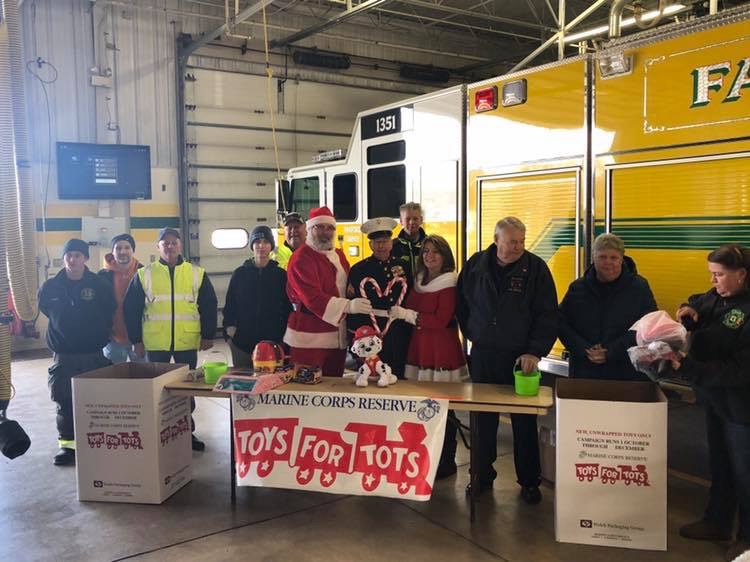 As the holidays draw closer, everyone is getting in the spirit. That includes Baltimore County Federation of Public Employees (BCFPE) President John Ripley. President Ripley brought some cheer to our Metro Baltimore AFL-CIO neighbors in Harford County joining with the Fallston Volunteer Fire and Ambulance and the Marine Corps Reserve for their Toys for Tots program. While most days, you can find President Ripley in the office and around the county working for employees in Baltimore county, on this night he and his wife Mary transformed from labor unionists to Mr. and Mrs. Claus.