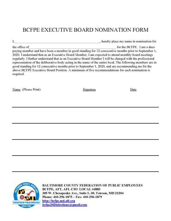BCFPE 2020 Executive Board Nomination Form